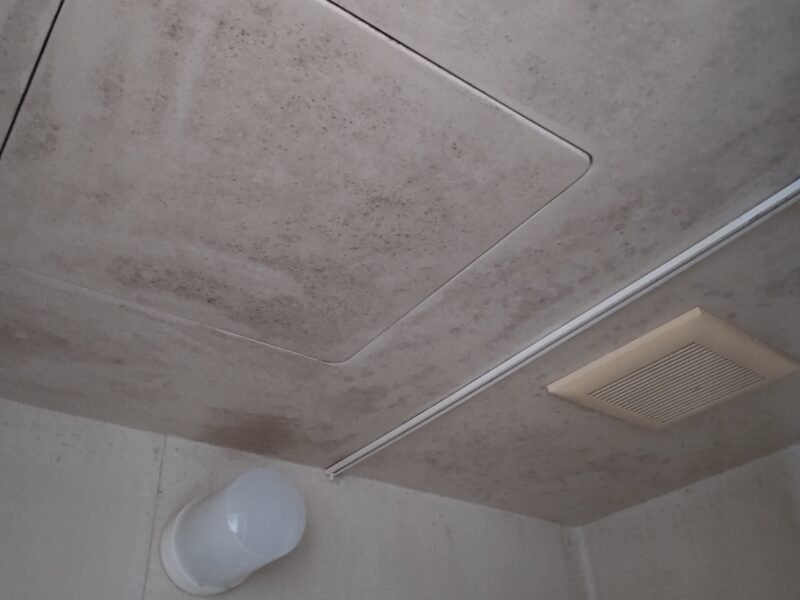 浴室天井のカビ汚れのビフォーアフターをご覧下さい。 天井一面にカビがあるのがわかります。壁にも広がっています。 こちらは壁にカビが付いているのがわかります。 これらをまず、シャワーで水養生します。浴室 …